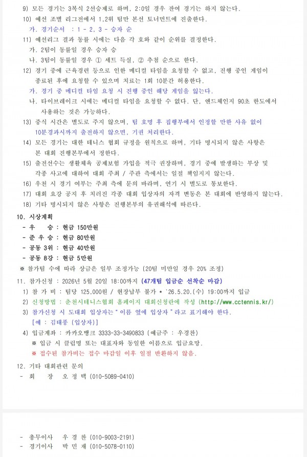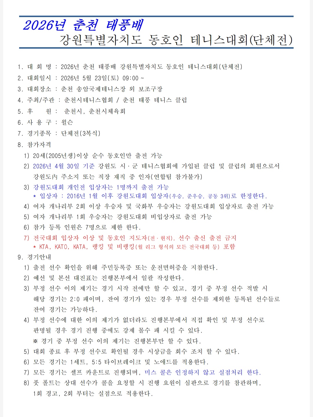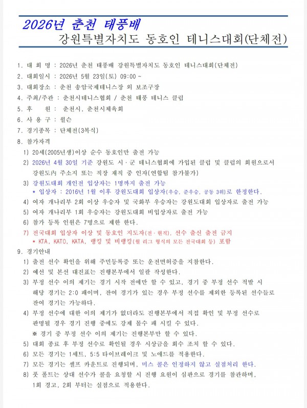 2026년 춘천 태풍배 강원특별자치도 동호인 테니스 대회(단체전)