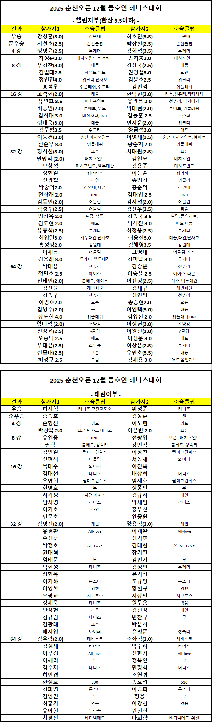 2025년 속초시 설악배 강원특별자치도 동호인테니스대회 개최(12월 13,14일)
